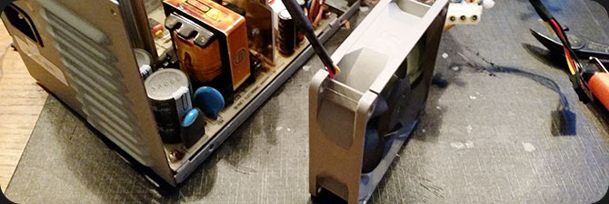 The PSU was rather simple to modify. Simple open it up, cut the wires and then re-solder the new fan into place. Just be sure to mount it so it sucks air from inside to outside.